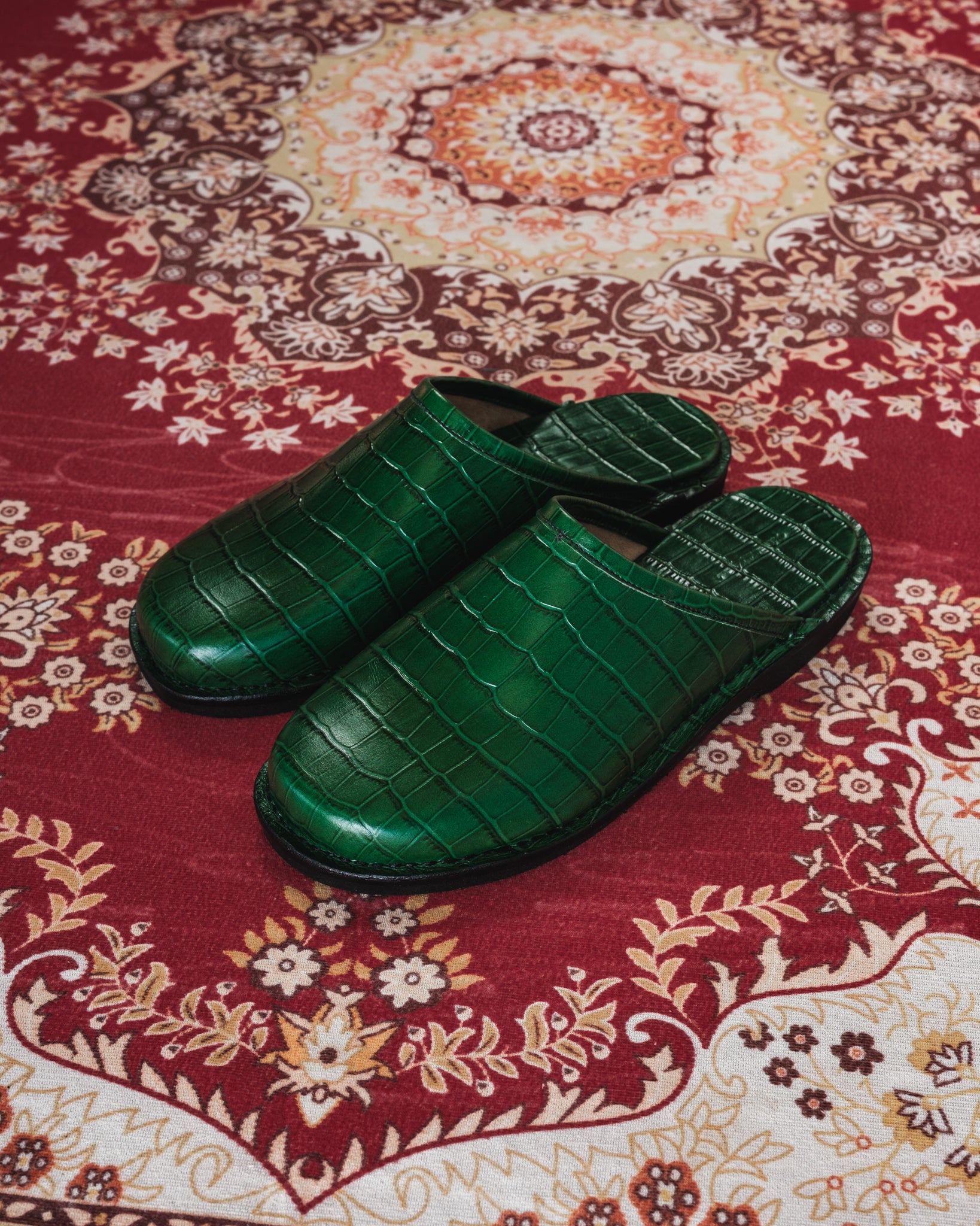 Crocodile Leather Mules - Dark Green